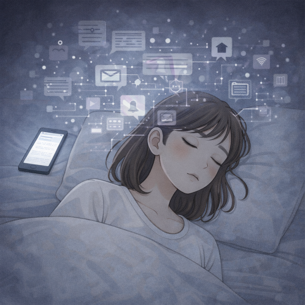 一日の終わり、何気なくスマホを手に取り、そのまま画面を眺めているうちに時間が過ぎてしまう。よくある光景ですが、この時間は頭が休まるどころか、情報を受け取り続けている状態です。体は横になっても、気持ちは切り替わらないまま夜を迎えてしまいます。
