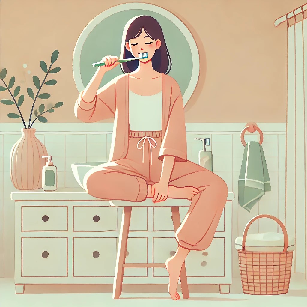 まず意識したいのは、力を抜くこと。夜のケアは「頑張る時間」ではなく「緩める時間」です。ベッドや布団の上に座って、軽く背筋を伸ばし、ゆっくり深呼吸を3回。鼻から吸って、口からふぅっと息を吐き出します。このとき、肩や首の力を抜いて、「今日もよく動いたな」と自分に声をかけてあげましょう。呼吸を整えるだけでも、心と体のスイッチがリラックスモードに変わっていきます。