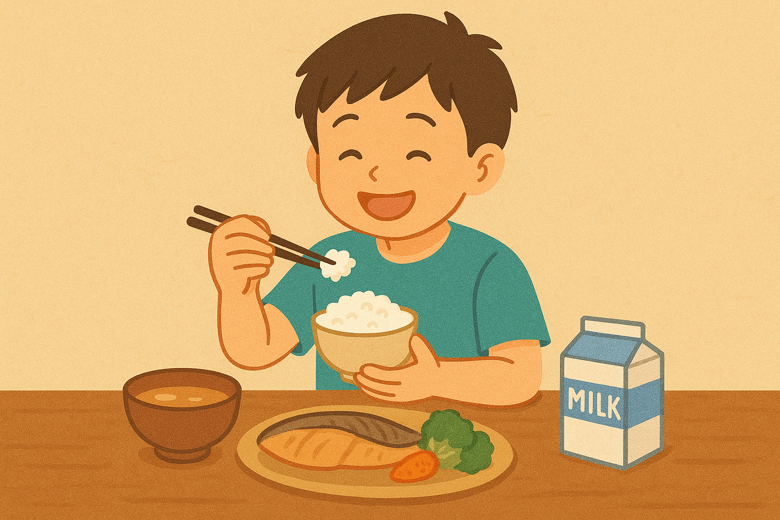食事も重要なポイントです。カルシウムやビタミンDといった骨を支える栄養素だけでなく、筋肉の発達に必要なタンパク質や、代謝に関わるミネラルもバランスよく摂ることが求められます。成長期の男の子は活動量が多くエネルギー消費も激しいため、食事の内容と量の両方を工夫することが健康につながります。